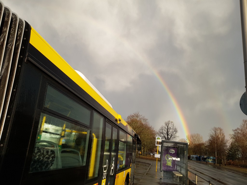 I unfortunately didn’t get to take a photo of the whole spectacle anymore as I was still on the bus and parts of the rainbow had already vanished when I got off, but I still got these: