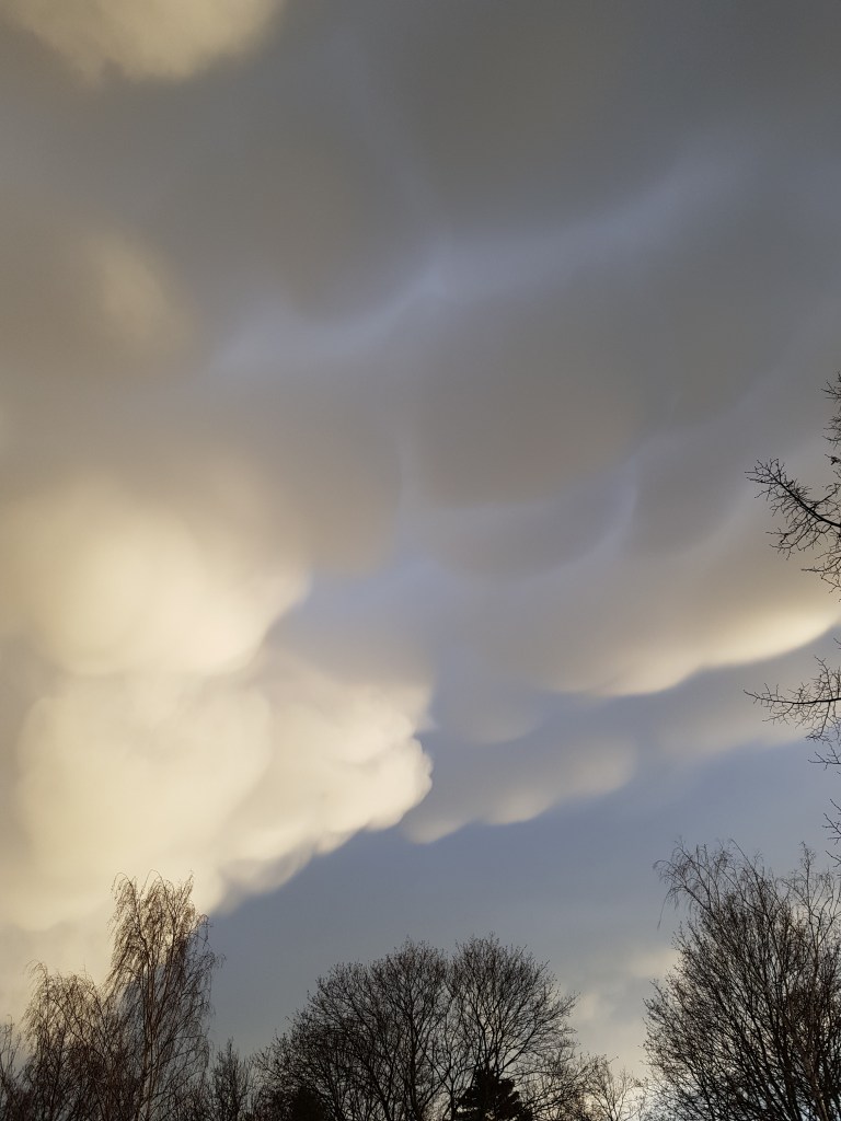 And just as I was about to store my phone away again, I was treated to something that doesn’t happen all too often: Mammatus clouds. I had never seen anything like that before, tbh, and since I am one of those people who will ALWAYS AND FOREVER be fascinated and excited with the sky in all its beauty, I couldn’t stop staring while I walked home.