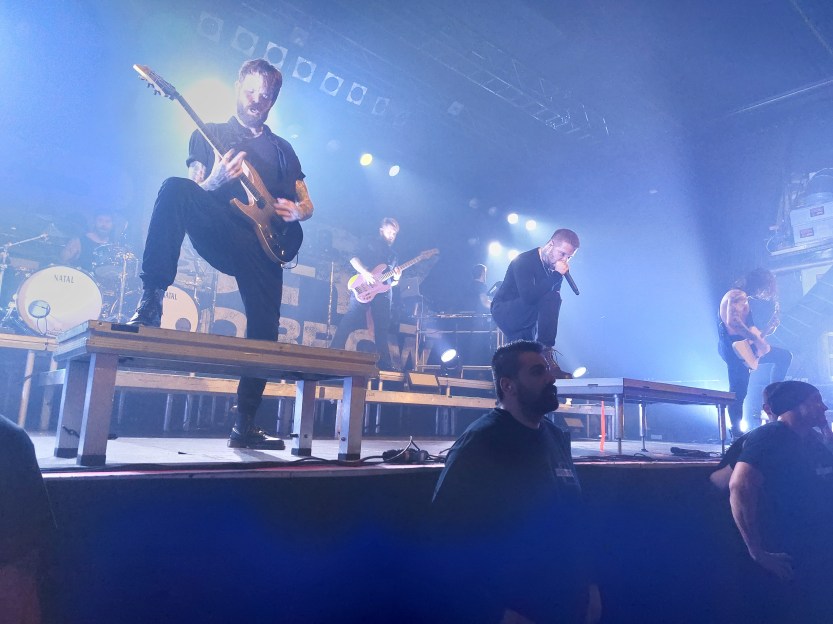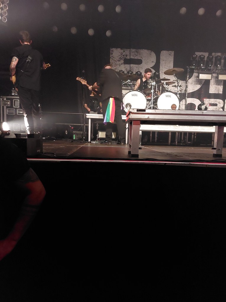 For some reason, I had also decided to bring my PRIDE flag to Cologne, and when the lads came on stage, I created some kind of Yorkshire Pride. Which of course didn’t go unnoticed as well – and sure enough, after like two songs in, Dav asked for the PRIDE flag. Here you go … handed it up to him via a security guy, and then this happened …